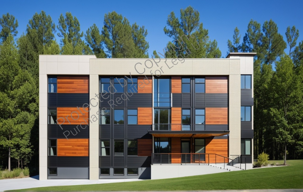 All modern facade design suggesting combination ob natural brick veneer(thin veneer Brick-it brand suggested) with reveiled seam metal panels(Versa-Seam-Reveal brand suggested) and hard wood horisontal cladding or composit materials.